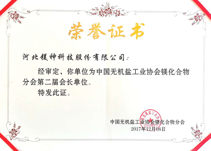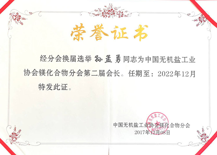 中国无机盐工业协会镁化合物分会第二届分会会长