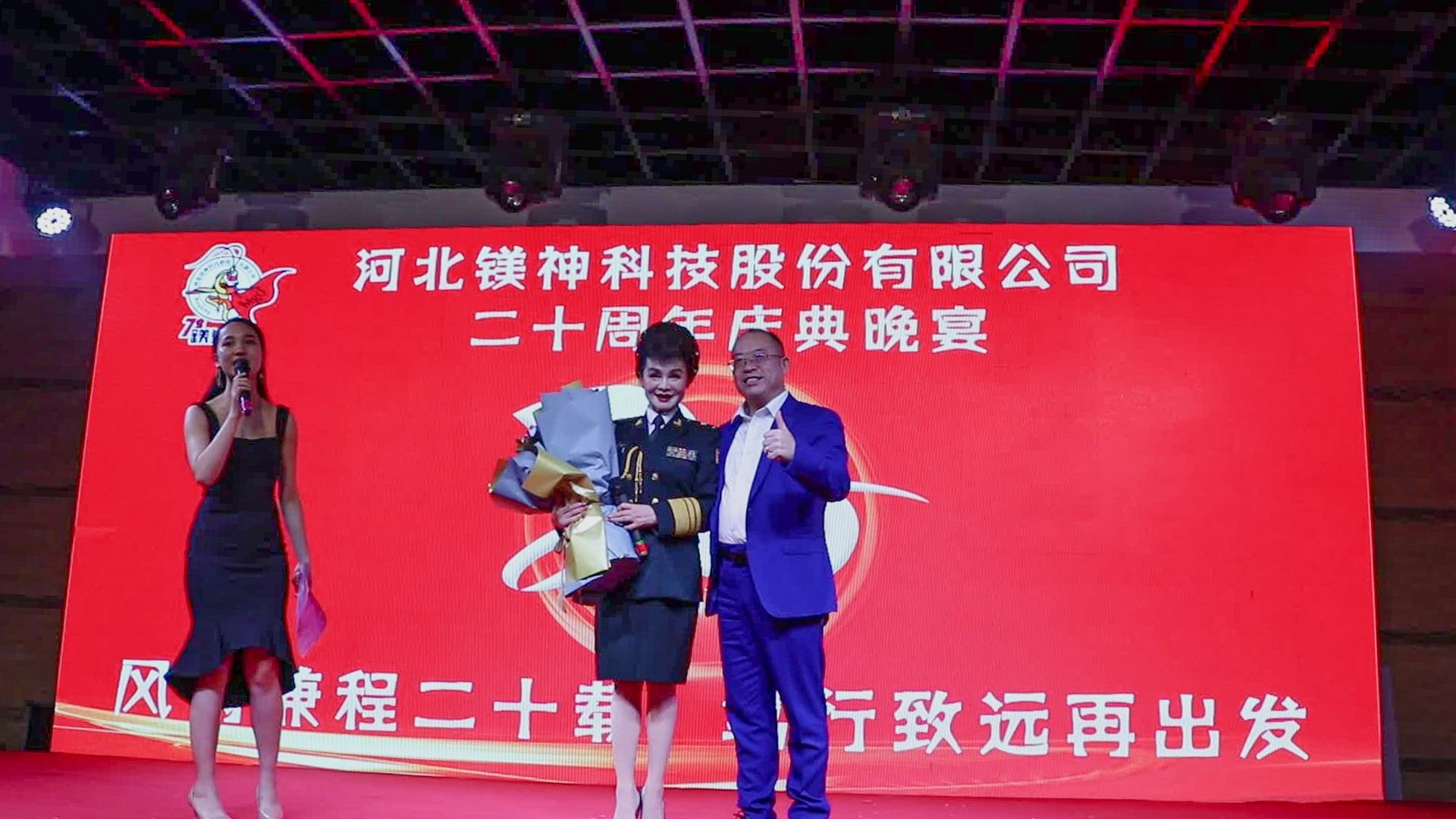 宾客代表:澳大利亚华人控股集团董事长/澳大利亚国际文化产业协会会长杨志唯、供应商代表西部镁业副总经理宋磊、银行代表中国建设银行广宗支行副行长张新辙、河北科技大学常务副校长胡永琪教授、中国无机盐协会副秘书长栗歆、广宗县委副书记王力分别上台致辞,庆祝镁神二十周年!