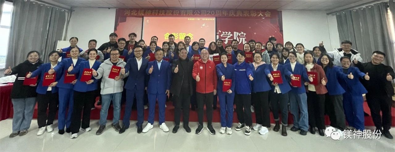 2023年10月,我们先后举行了老员工表彰大会、“创新引领发展,应用赢得未来”中国镁盐协会技术论坛暨镁神科技20周年庆典、“合作共赢、携手未来”河北镁神科技股份有限公司20周年庆典暨大客户交流活动。