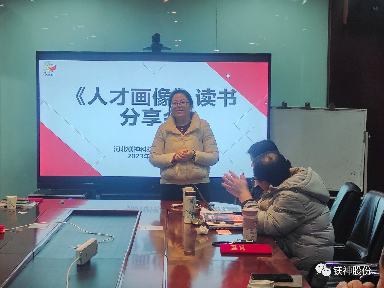 2023年12月30日,为打造学习型组织,提升组织学习能力,河北镁神科技股份有限公司在二楼会议室举办了一场别开生面的《人才画像》读书分享会。公司孙总、部长级以上人员等共聚一堂,共同分享了对这本书的学习心得,以及如何运用书中的知识到实际的招聘和人才培养中。