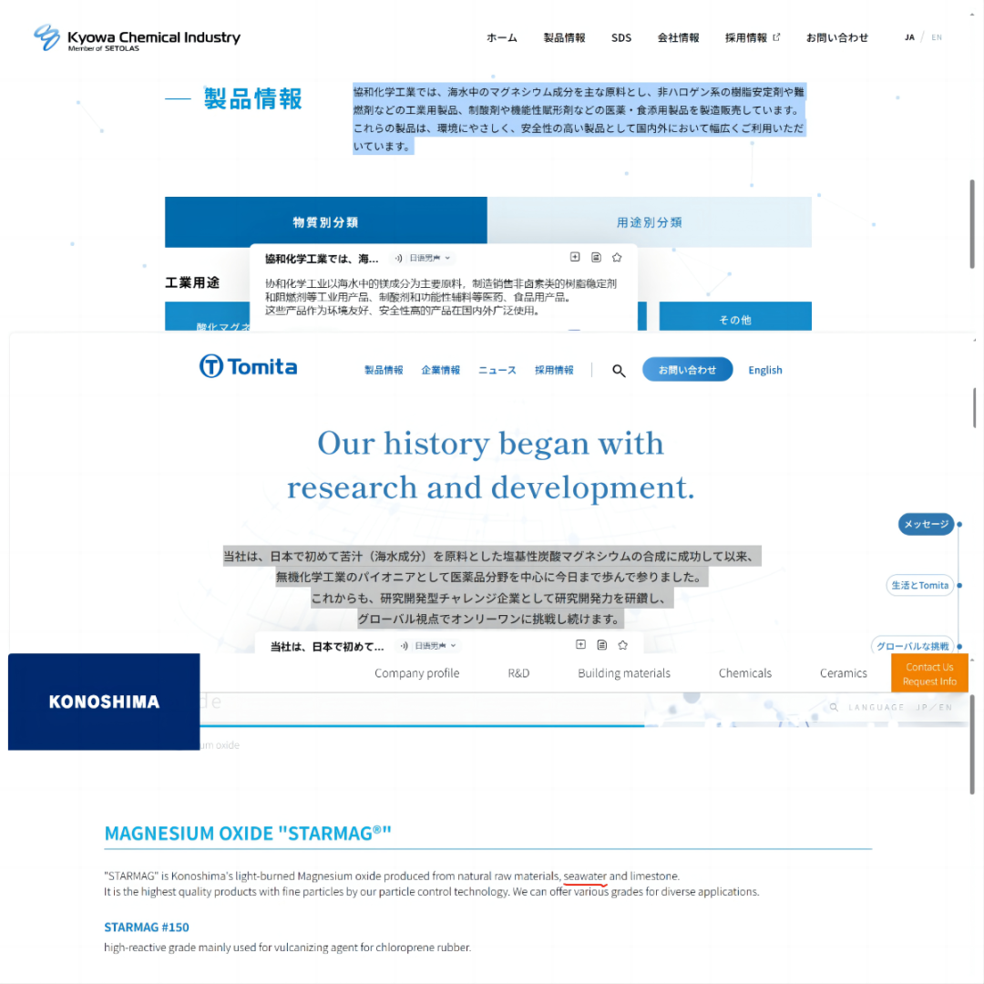 图为相关日本公司官网将海水法制镁盐作为宣传