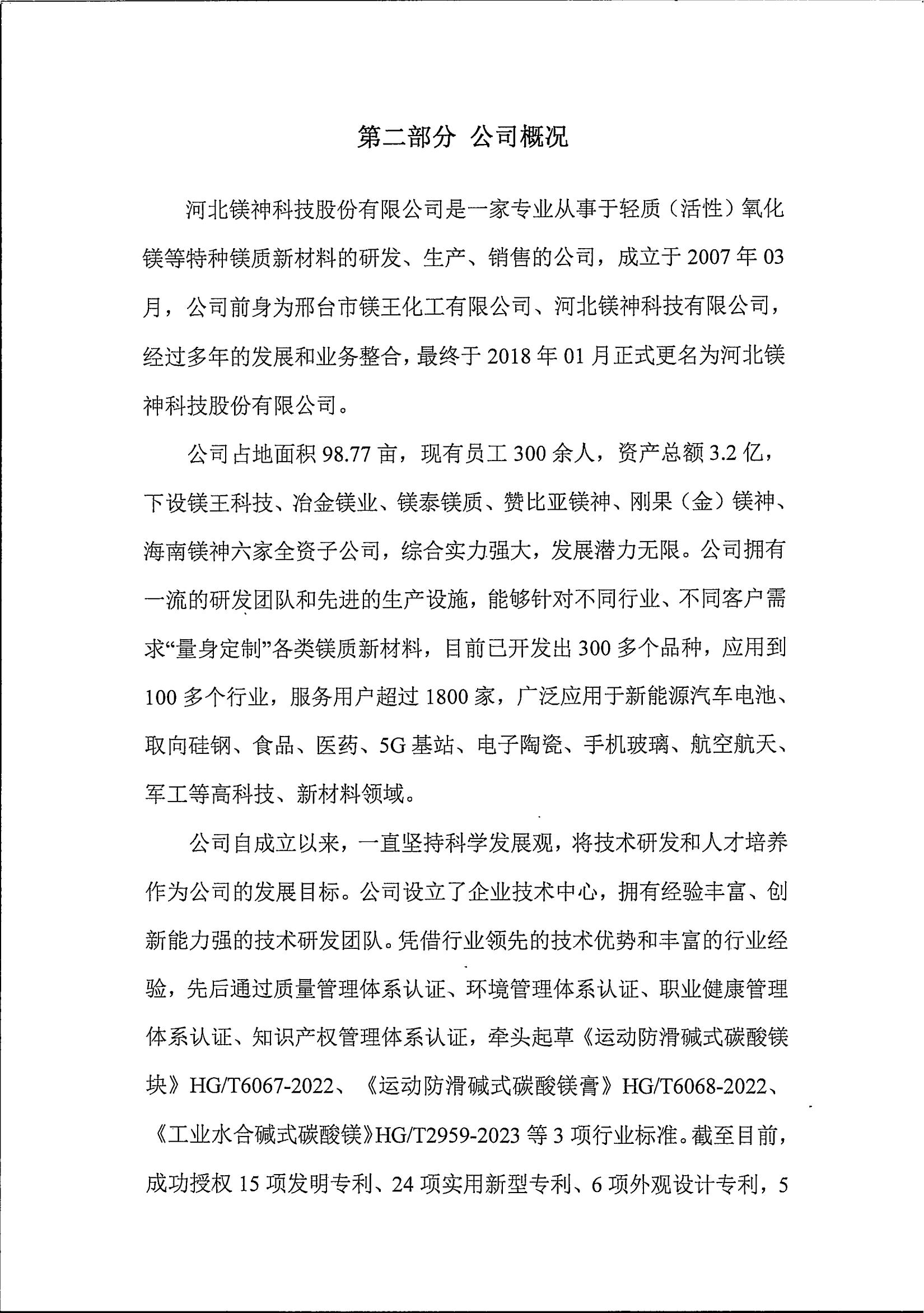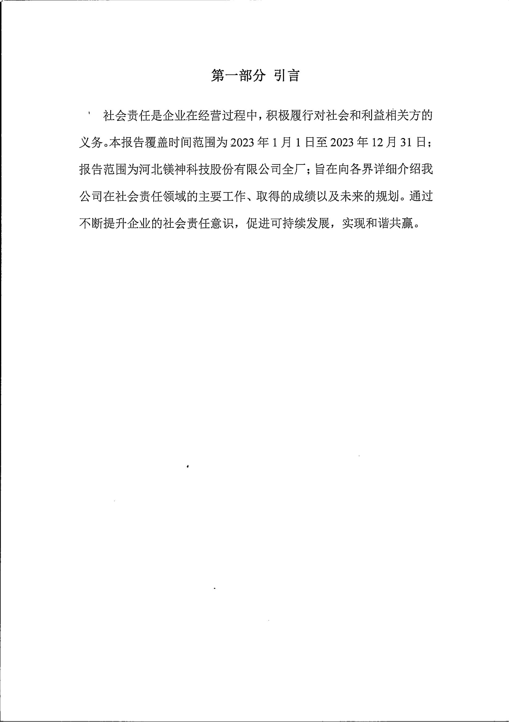 新闻摘要:河北镁神科技股份有限公司2023年度社会责任报告