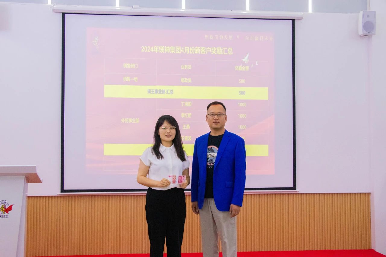 近日,河北镁神科技股份有限公司迎来了新的业务突破,公司颁发4月份新客户奖励,以表彰和奖励那些为公司带来新增长点的销售团队和个人。