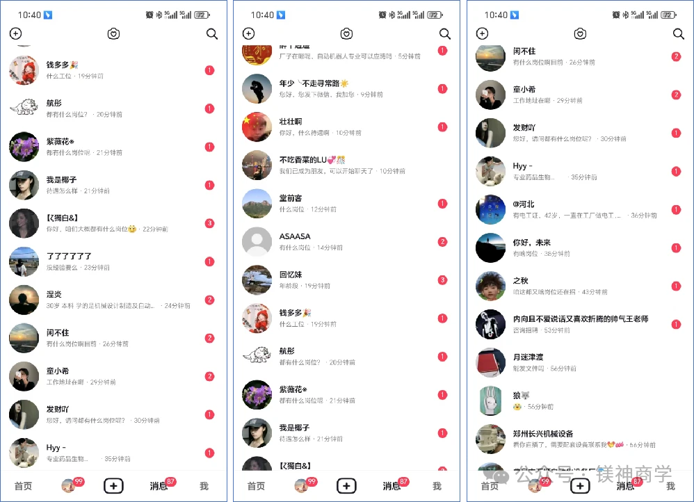 在没有任何投流的前提下,运营中心其他没到现场的小伙伴,在线持续点赞、评论、提问以增加直播间的热度;最终超过380人次应聘者陆续进入了我们的直播间,点赞量达1万+,私信咨询人员122人。