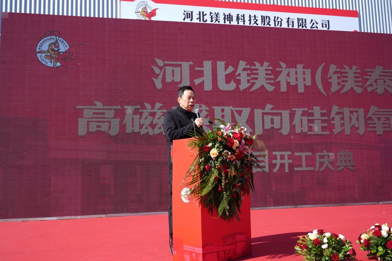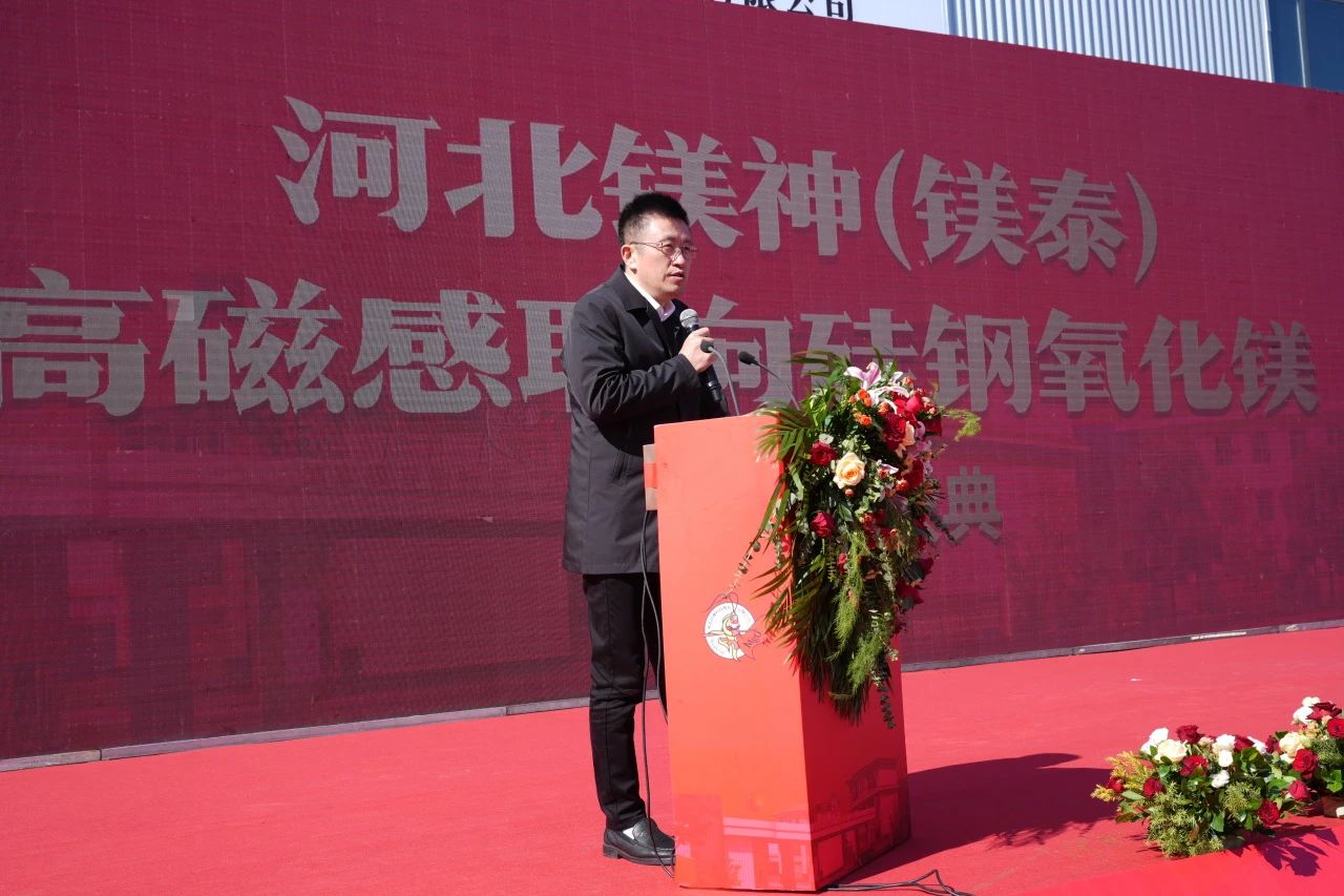 孙文董事长首先对远道而来的各位领导、专家、合作伙伴和朋友们表示由衷的感谢。他提到,这一项目的顺利启动,离不开社会各界长期以来对镁神科技的支持与厚爱。在致辞中,他回顾了公司21年来通过专注于氧化镁行业的深耕与应用研发,从传统氧化镁产品逐步向高端化、精细化转型升级的发展历程。并分享了自己站在中国镁盐行业的前沿对硅钢氧化镁的见解。最后,孙文董事长再次对与会嘉宾的支持表示感谢!并坚信在镁神的战友们共同努力下,未来10年一定能实现世界级镁质新材料定制专家,世界级应用研发领跑者,全球镁资源整合者,世界级隐形冠军缔造者的战略目标。为中国一带一路添彩,为中国制造争光,为民族复兴增砖添瓦,为中国镁行业发展贡献我们的一份力量。