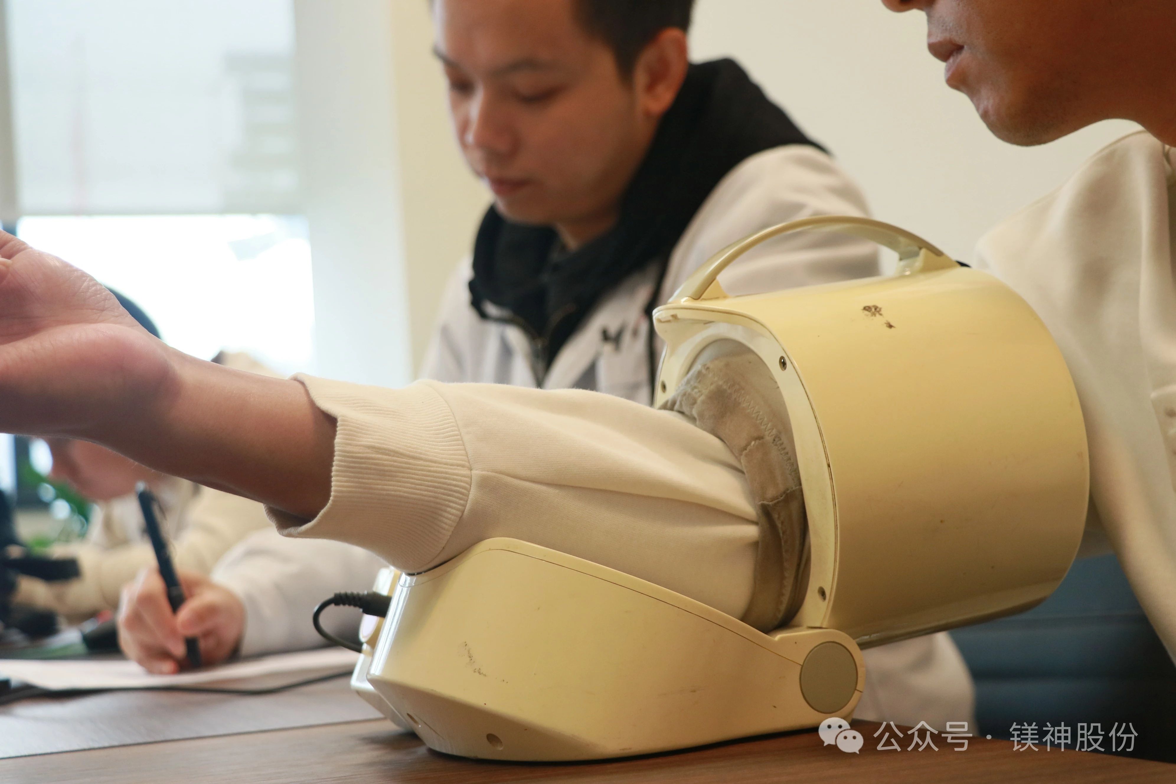 河北镁神科技股份有限公司(以下简称“镁神科技”)为体现公司对员工的关怀,提高员工对自身健康状况的重视,于11月15日-16日组织开展2024年度员工体检活动,本次镁神科技与邢台市信都区医院合作,为镁神员工送上了一份温暖和健康。