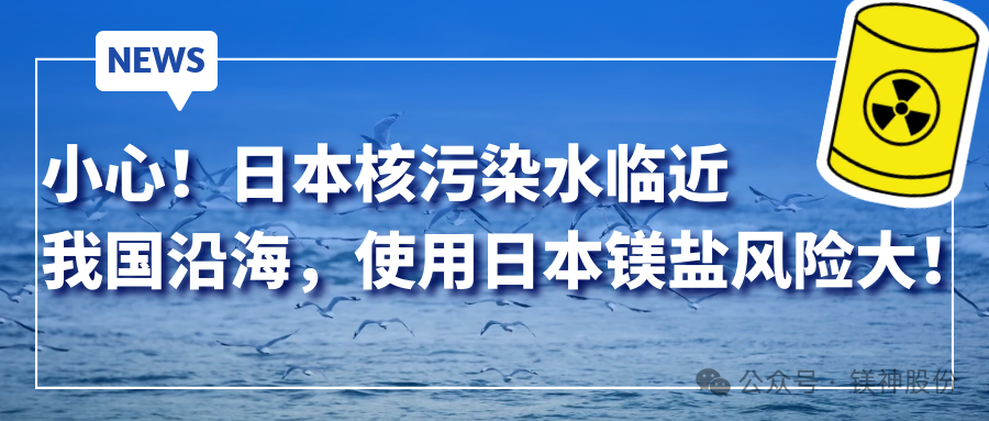 长期以来,这些企业采用“海水法”以海水中的镁成分为主要原料,制造销售镁盐产品。而镁盐在工业中广泛应用,如树脂稳定剂和阻燃剂等工业用产品、抑酸剂和功能性辅料等医药、食品用产品。这些产品作为环境友好、安全性高的产品在国内外广泛使用。然而,日本自核污水排海后已发生多起“因食用当地海鲜引起食物中毒”、“当地海滩上出现大量异常死亡海鲜”类似事件,同样是来自于海水的日本镁盐其对人类的危害程度可想而知。